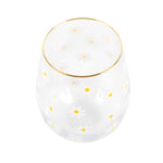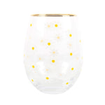 Introducing our cheerful and understated stemless glass, adorned with an all-over daisy print and a stylish gold-tone rim. This delightful glass is the perfect companion for springtime celebrations and joyous gatherings in the sunshine, making it an ideal gift for any occasion.