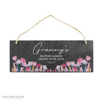 The Personalised Hotchpotch Wild Flower Hanging Slate Plaque includes a rustic piece of natural string, making it easy to hang and instantly elevate any space.