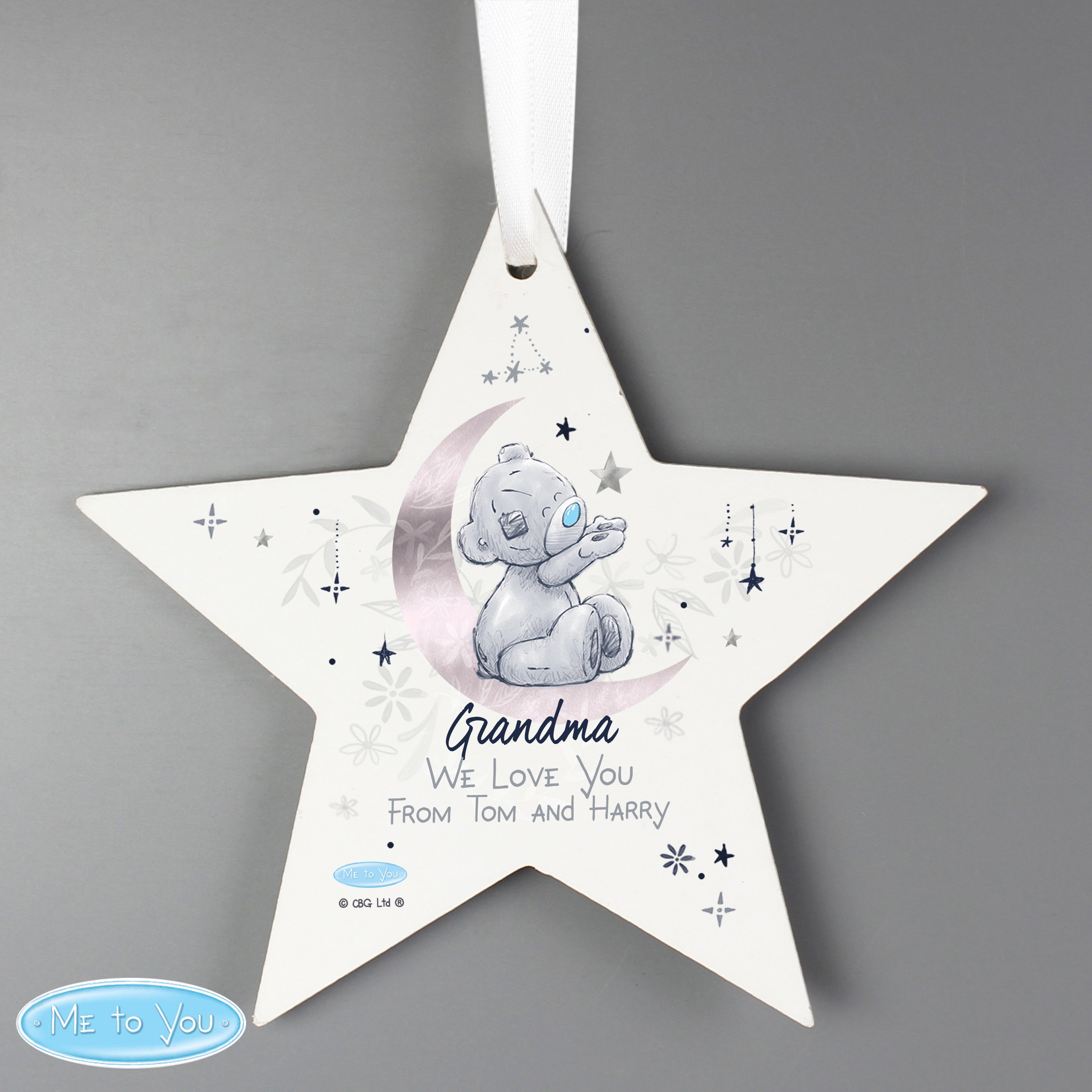 Illuminate their world with our enchanting Personalised "Moon & Stars" Me To You Wooden Star Decoration. This celestial-inspired hanging wooden star is designed to bring joy and wonder to the recipient, making it a heartfelt gift for any occasion.